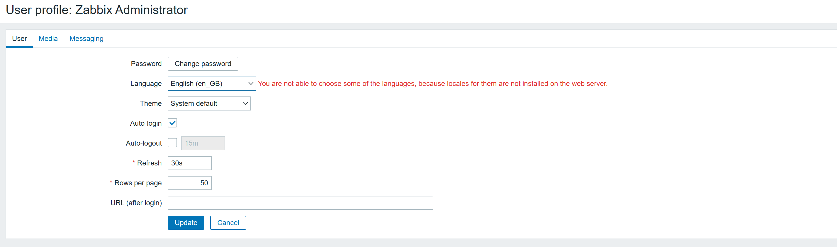 页面错误提示:You are not able to choose some of the languages, because locales for them are not installed on the web server